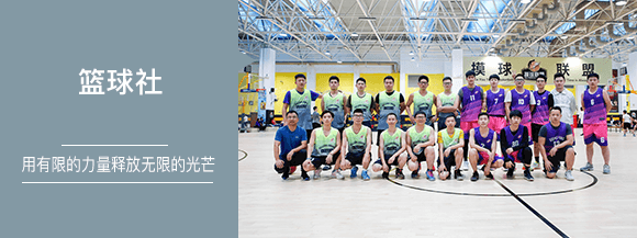 社團(tuán)常規(guī)活動(dòng)為每周訓(xùn)練課,組織內(nèi)外部友誼賽,每年舉辦集團(tuán)三對(duì)三籃球?qū)官悺I鐖F(tuán)還代表集團(tuán)積極參加區(qū)、市級(jí)籃球比賽,連續(xù)兩年蟬聯(lián)高新區(qū)企業(yè)籃球聯(lián)賽冠軍。